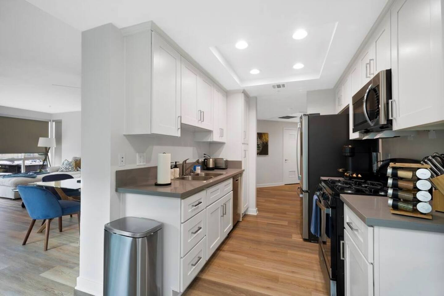 π Master Bedroom β King-size bed with premium linens, calming marina vibes, and ample storage π Second Bedroom β Two full-size beds, perfect for families, friends, or group stays π Two Full Bathrooms β Spa-inspired finishes, full tubs/showers, and stocked with essentials π½ Fully Equipped Kitchen β Stainless steel appliances, cookware, dishware, and coffee maker (Nespresso Machine) π Open-Concept Living & Dining β Hardwood floors, modern furnishings, and natural light πΆ Fast Wi-Fi & Smart TV β Ideal for streaming, working remotely, or relaxing at home π§Ί Washer & Dryer (In The Hallway) β Conveniently located in the hallway with detergent provided πΆ Family-Friendly Extras β Air mattress, Pack βn Play, and high chair available upon request πΎ Pet-Friendly β Up to 2 pets allowed with approval ($49 per pet) π Resort-Style Amenities π Outdoor Pool, Jacuzzi and Saunaβ Perfect for sunny days and relaxing evenings ποΈββοΈ Fully Equipped Gym β Stay active during your visit with modern fitness equipment π Reserved On-Site Parking β Two Hassle-free parking included with your stay π Steps from Motherβs Beach β Calm, kid-friendly beach great for paddleboarding and lounging π Unbeatable Location π£ Venice Pier β 0.7 miles / 3-minute drive π Abbot Kinney Blvd β 1.5 miles / 6-minute drive π‘ Santa Monica Pier β 3.5 miles / 12-minute drive βοΈ LAX Airport β 6.7 miles / 18-minute drive