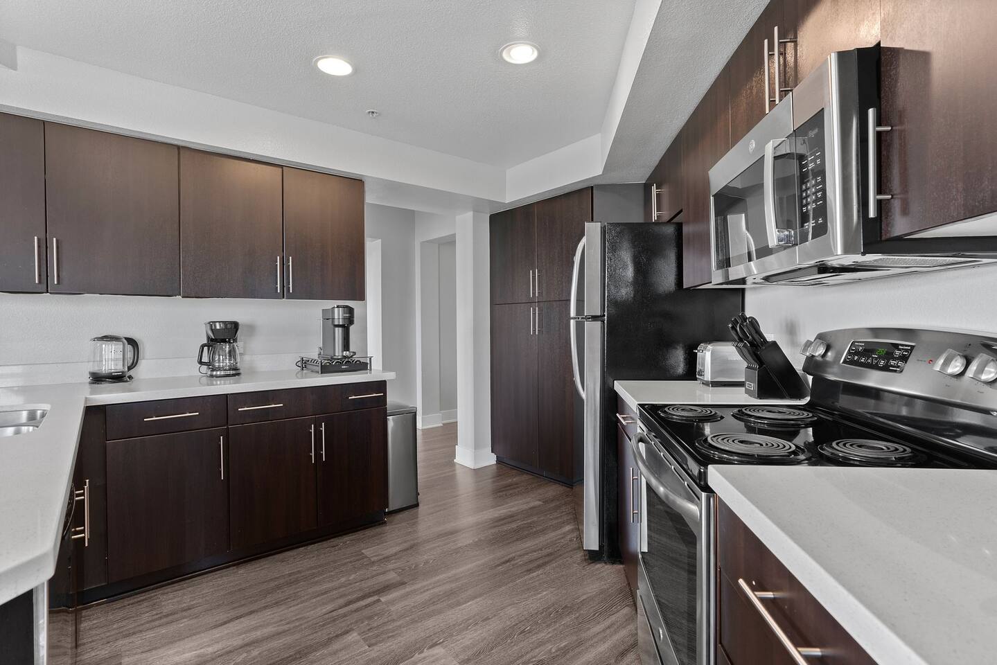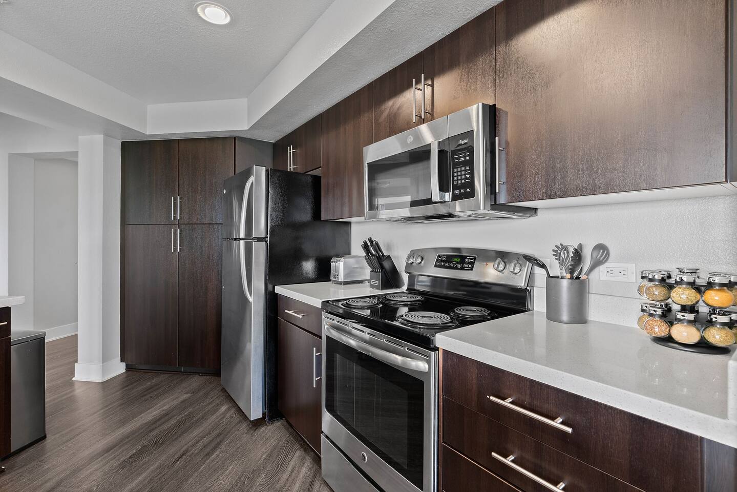 🏡 Inside the Apartment All 3 bedrooms and 2 full bathrooms Spacious living room with a 65" Smart TV Fully equipped kitchen with appliances and cookware Private balcony with outdoor seating In-unit washer & dryer 🧺 Blazing-fast 1 Gbps Wi-Fi 🌐 Dedicated workspace for remote work 2 gated parking spaces 🚗🚗 🌟 Building Amenities Two Heated pool 🏊 Jacuzzi for 6 people 🛁 Outdoor BBQ area with lounge seating and dining space 🍽 Full fitness center with cardio, weights & yoga zone 💪🧘 📲 After booking, you’ll receive full check-in instructions, parking details, and amenity access info. We’re always just a message away—ready to assist before, during, or after your stay!