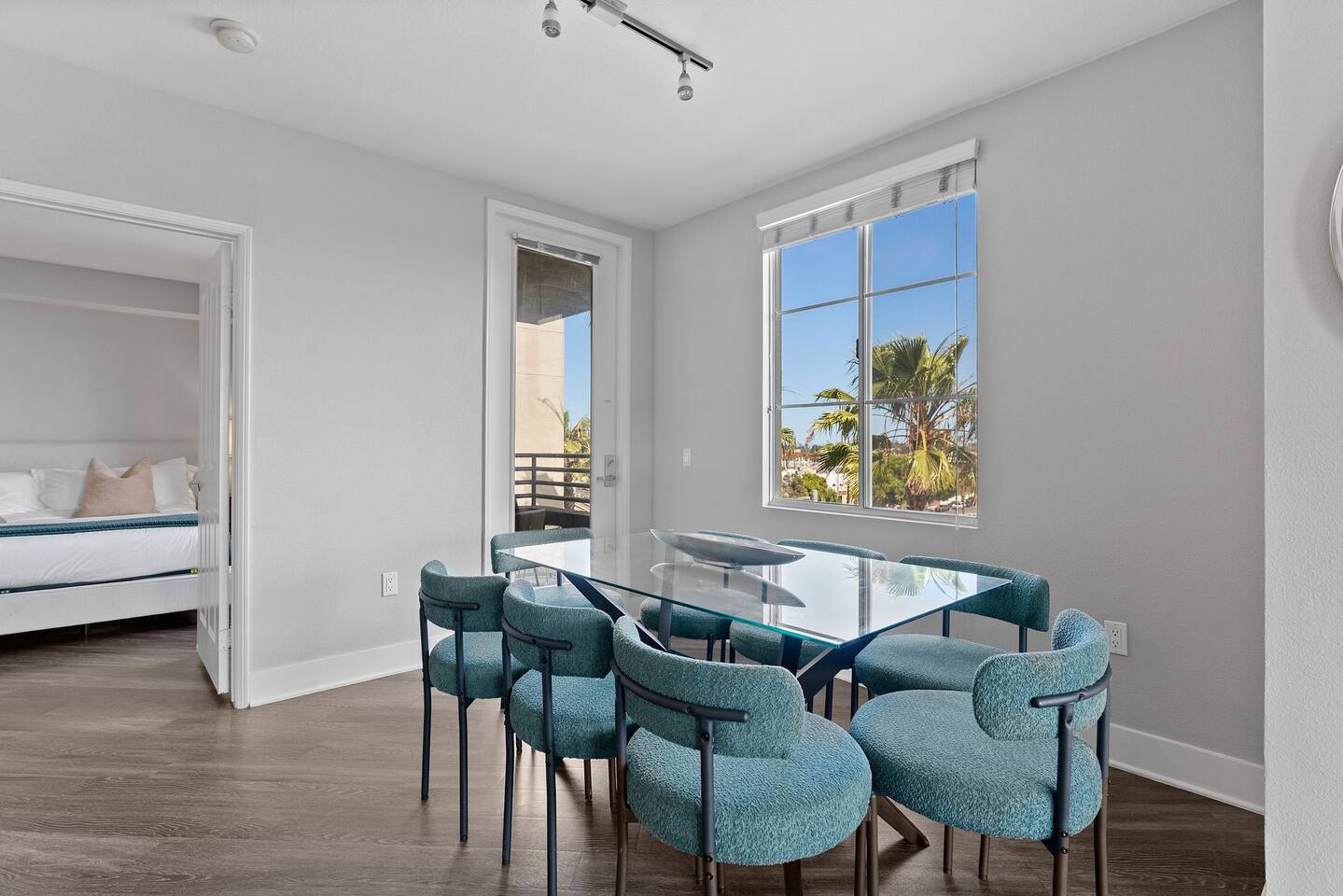 Welcome to Santa Monica Serenity — a stylish, sun-filled 3-bedroom coastal retreat where space, comfort, and location meet. Perched on a high floor in a prime area, this home blends upscale finishes with laid-back California charm, offering the perfect base for your beachside getaway. 🛋 Living Room Bright open-concept layout with large windows and abundant natural light Modern designer furnishings and a calm, coastal-inspired décor Plush sectional sofa and 65" Smart TV for streaming your favorites Central A/C and heating for year-round comfort 🍽 Kitchen & Dining Cook, dine, and entertain with ease in your fully equipped modern kitchen, featuring: Stainless steel appliances & sleek quartz countertops Ample cabinetry stocked with cookware, dishes, and utensils Coffee maker, blender, toaster, and basic pantry essentials Dining table for 6 guests — perfect for meals or game nights 🛏 Bedrooms Primary Bedroom King-size bed with premium mattress & plush linens 55" Smart TV & spacious walk-in closet En-suite spa-style bathroom with double vanity & glass shower Second Bedroom Queen-size bed with premium linens Large closet & work desk — ideal for remote work Full access to the second bathroom Third Bedroom Queen-size bed & storage space Shares access to the second bathroom 🚿 Bathrooms Two sparkling-clean full bathrooms with walk-in glass showers Premium toiletries, plush towels, and hair dryers provided 🌇 Private Balcony Extended private balcony with seating Enjoy coastal breezes, morning coffee, or sunset drinks with partial marina views 🧺 In-Unit Features Full-size washer & dryer (detergent included) 1Gig high-speed Wi-Fi — perfect for work or streaming Keyless entry for secure, flexible check-in Ample closet space in all rooms 🏢 Resort-Style Building Amenities Pool & Outdoor Lounge Two heated swimming pools (including a fenced kids’ section) Spacious jacuzzi for 6 Outdoor lounge chairs, cabanas, and shaded seating areas Built-in BBQ grills and dining tables Fitness Center Fully equipped with cardio machines, free weights, and yoga/stretch area Bright windows with pool views for an uplifting workout Additional Perks Secure, controlled building access Clean, well-maintained common areas 📍 Location Highlights Walk or bike to everything: Santa Monica Beach & Venice Pier — 10–12 min walk Mother’s Beach — right across the street Cafés, parks, restaurants, and beachside bike trails steps away Groceries, coffee shops, and Santa Monica Plaza within walking distance 🎯 Perfect For ✔ Beach lovers & wellness travelers ✔ Remote workers & business guests ✔ Families or groups up to 6 ✔ Couples or friends seeking a relaxing coastal escape 💫 Why You’ll Love It Santa Monica Serenity offers the best of coastal California living — a spacious, light-filled home with resort-style perks, a walkable location, and thoughtful touches that make every stay comfortable. Whether you’re here to unwind on the sand, explore LA’s vibrant culture, or work remotely with a view, this is your dream stay by the beach.