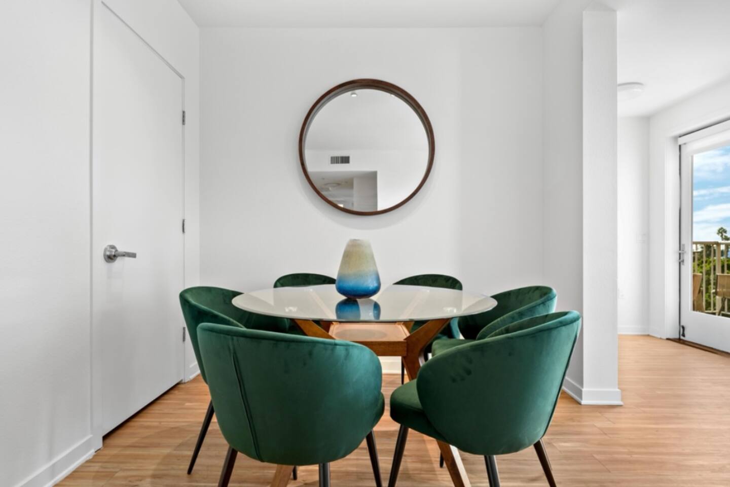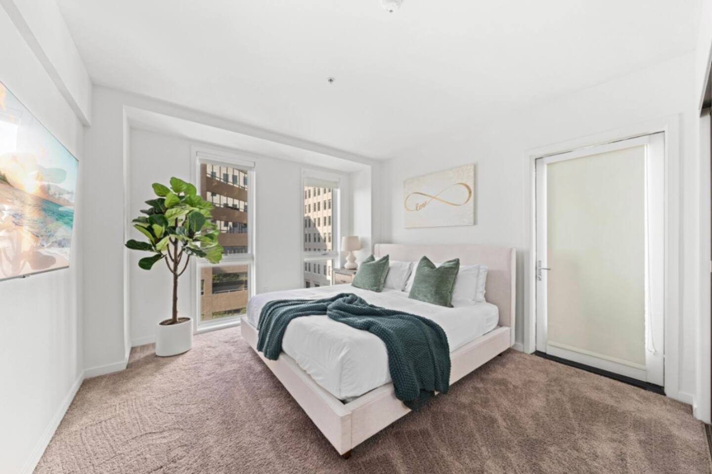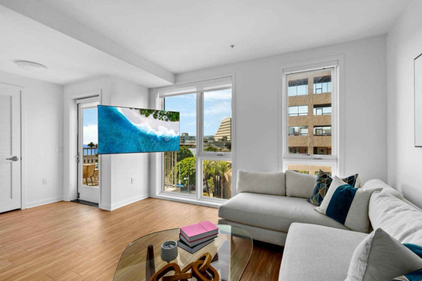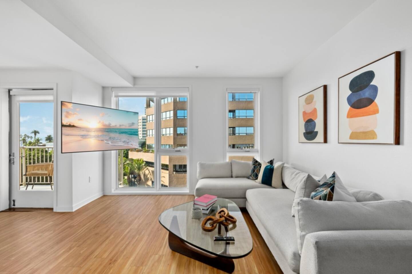 Panoramic Ocean Views Wake up to stunning, full-frontal views of the Pacific Ocean. Enjoy sunsets from the comfort of your living room. Just three blocks from the sand Prime Downtown Location Located in the heart of Santa Monica, you're steps from the Third Street Promenade, Santa Monica Pier, upscale dining, boutique shopping, and the beach. Peaceful & Zen-Inspired Despite being in the heart of the city, the apartment offers a calming, retreat-like ambiance, perfect for remote work, reading