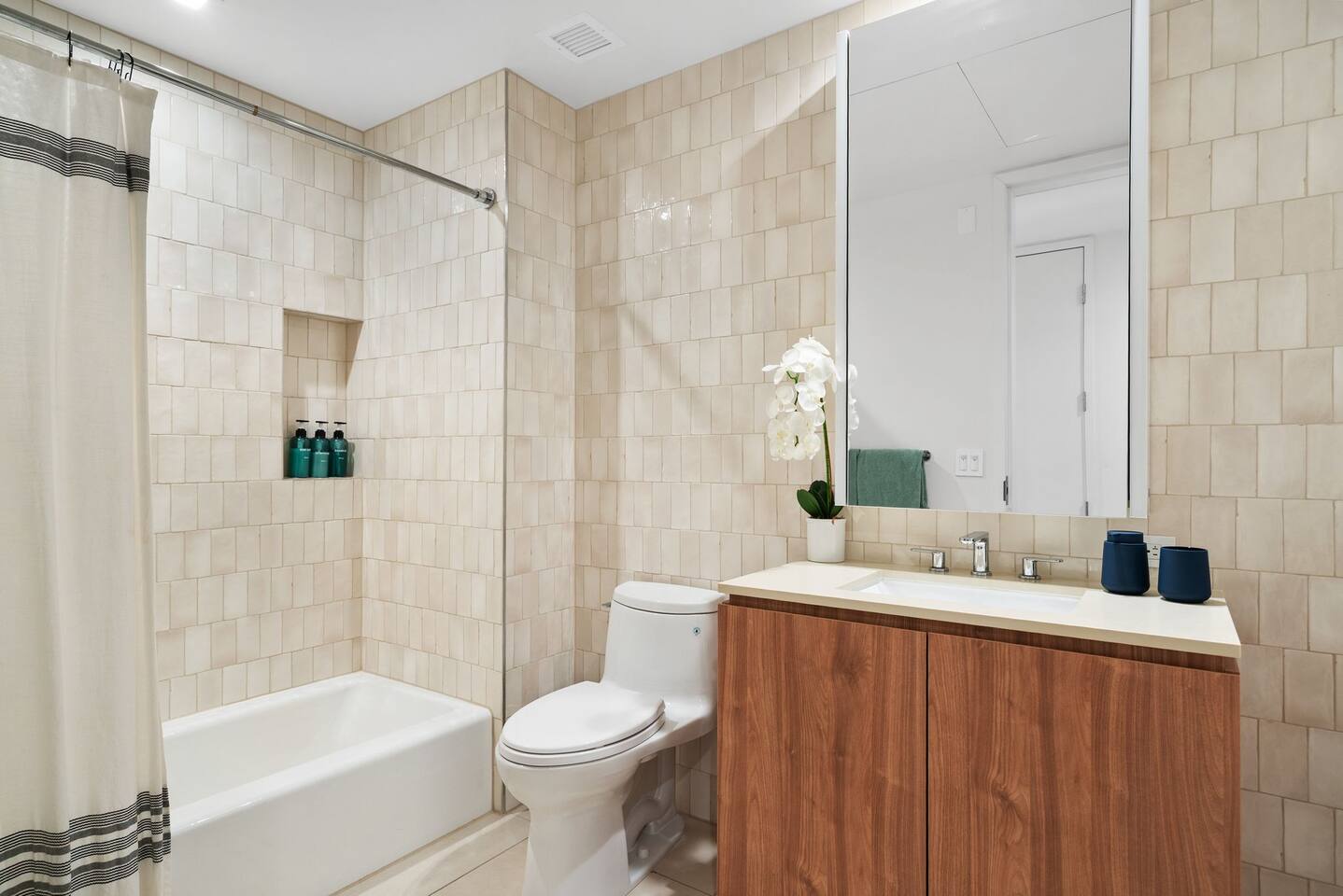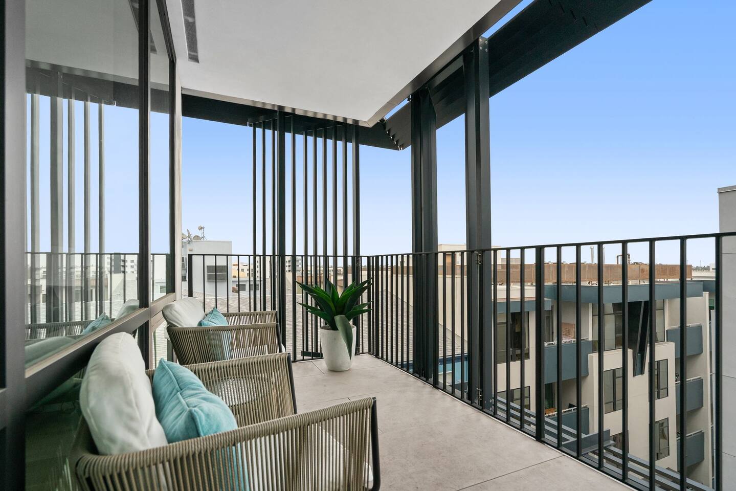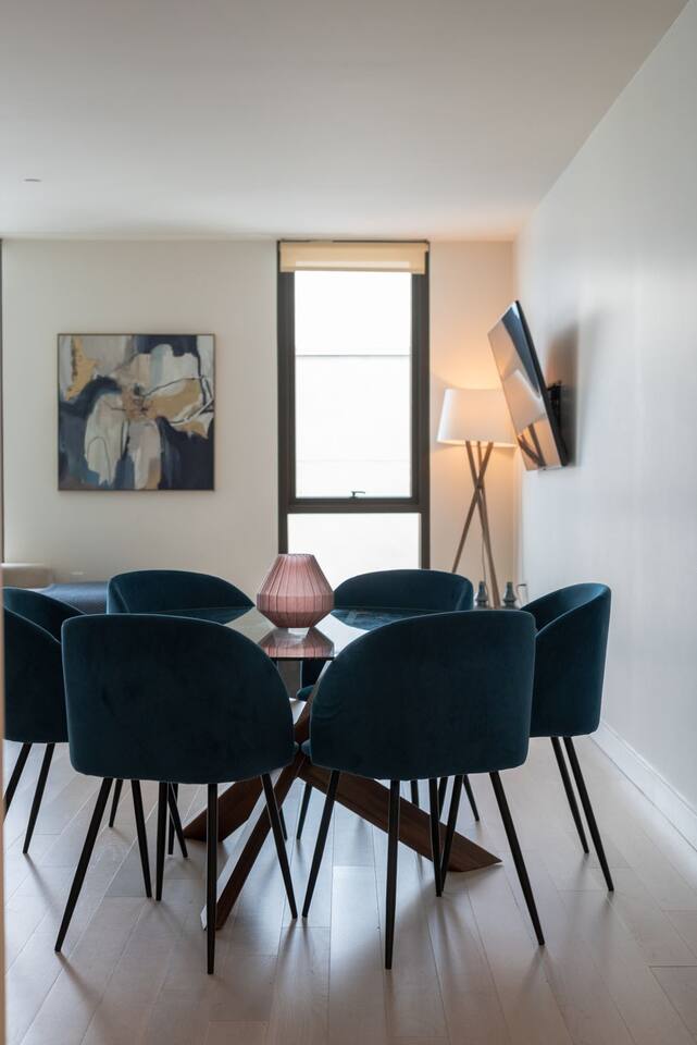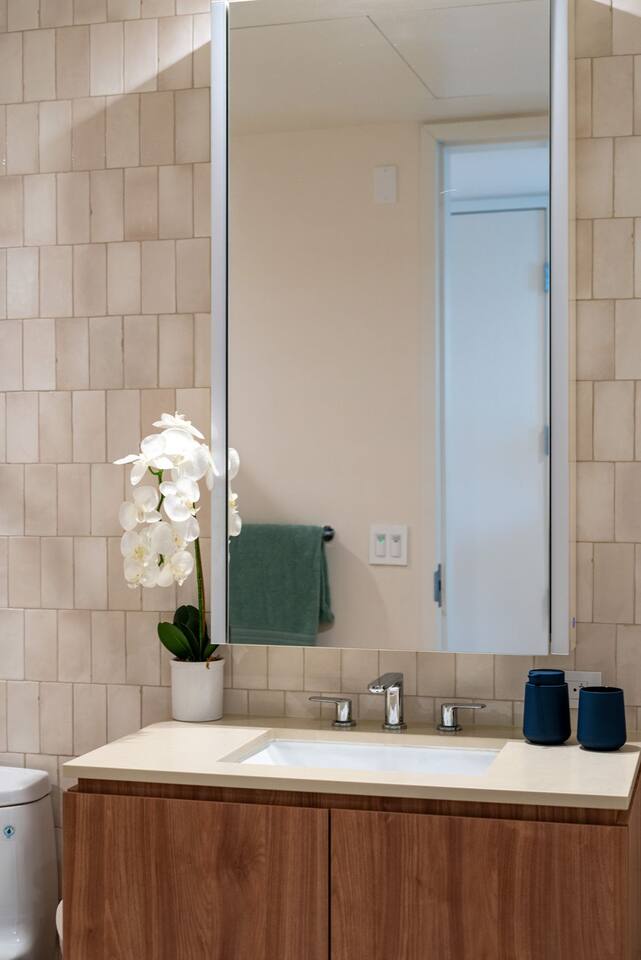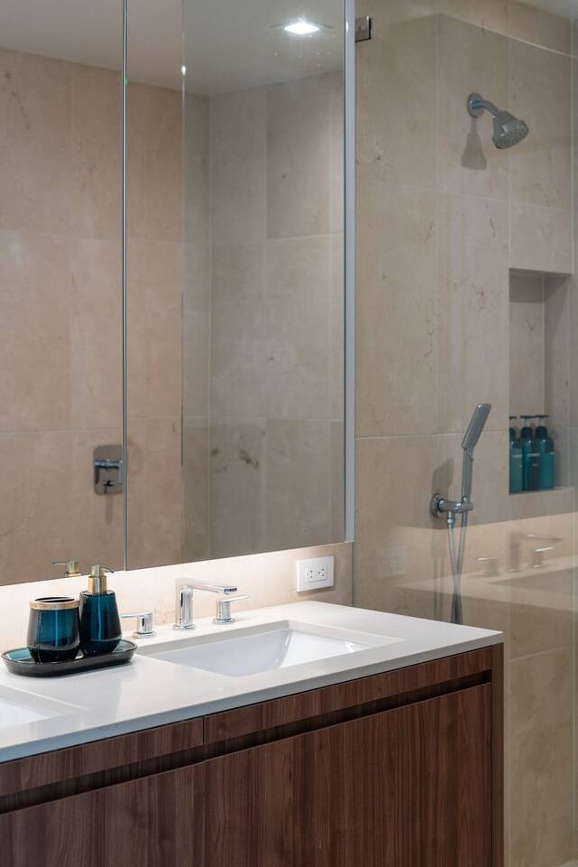 ✨ Property Highlights Prime Location, Brand New Building High floor unit 2 spacious bedrooms & 2 full bathrooms for maximum comfort Expansive Private balcony with outdoor furniture for relaxing or dining. In-unit full-size washer & dryer for added convenience Blazing-fast 1Gig WiFi for work and play Rooftop Resort-inspired Gym, Pool to elevate your stay