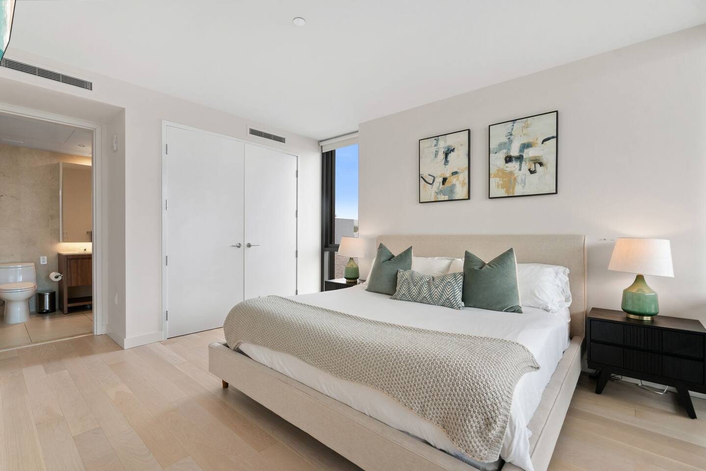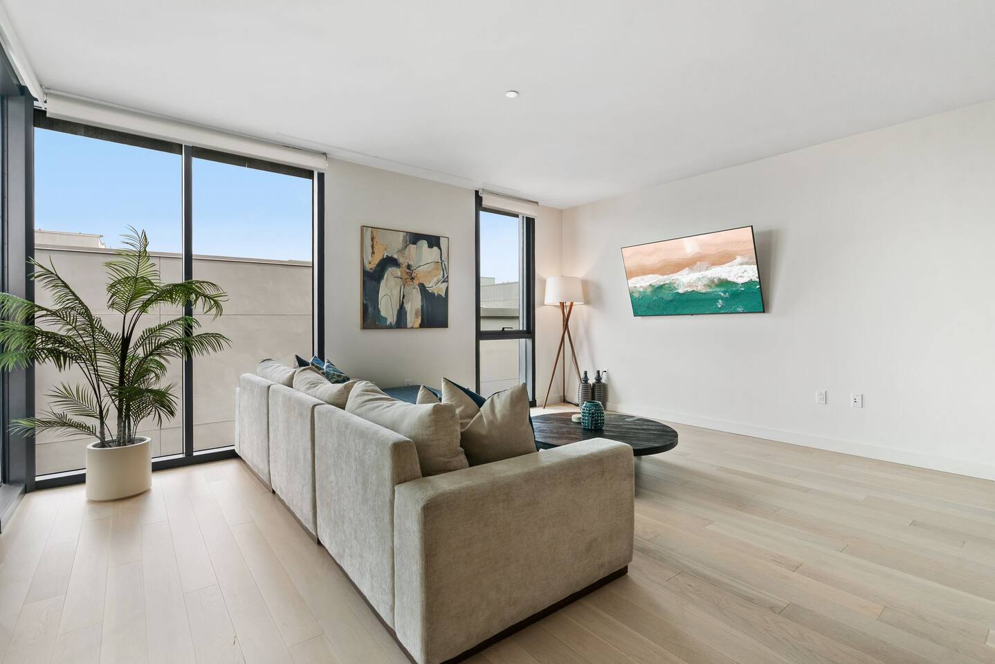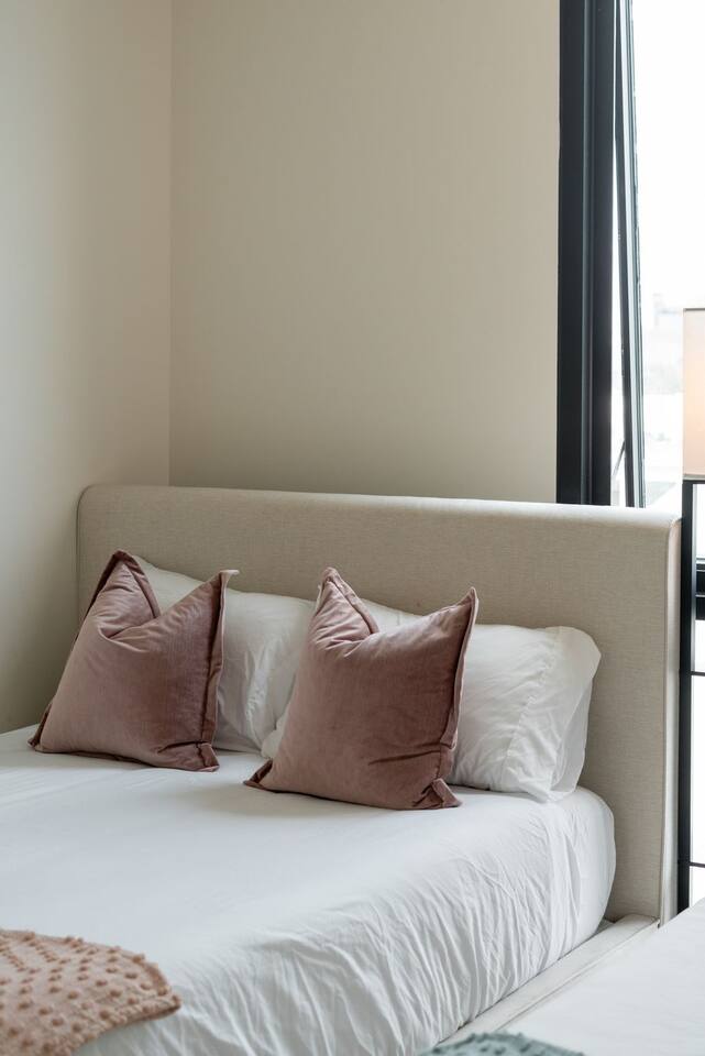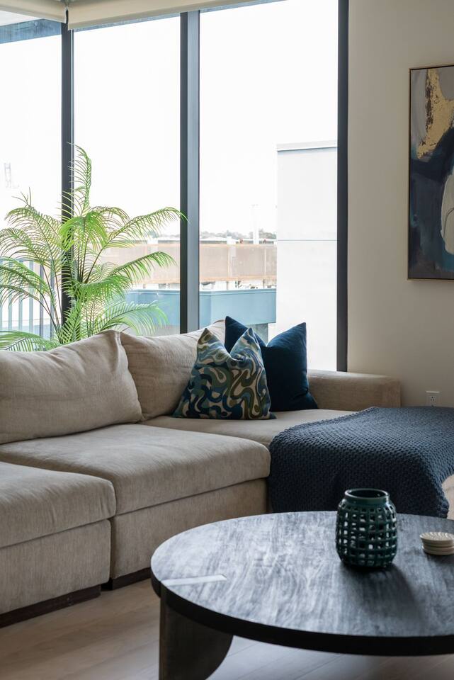 🌟 About the Space Welcome to Santa Monica Enjoy our high floor unit, Brand New building, premium privacy, and beautiful touches throughout. 🛋 Living Room Bright, open-concept layout with floor-to-ceiling windows and sleek designer furnishings. Enjoy the 65" Smart TV, ultra-comfy seating, and quiet ambiance thanks to top-level insulation. Central A/C and heat keep the space perfectly comfortable year-round. 🍽 Kitchen & Dining Cook up a storm in the fully equipped gourmet kitchen with stainless steel appliances, quartz countertops, and custom cabinetry. If you’re missing anything during your stay, just let us know. we’ll be happy to bring it to you 🛏 Bedrooms Primary Bedroom King-size bed with luxury mattress, 55" Smart TV, and a spacious walking closet. The en-suite bathroom feels like a spa retreat. Second Bedroom Two Full size bed, large closet, and a dedicated work desk for business travelers or remote workers. Guests have access to a second full bathroom. 🚿 Bathrooms Two sparkling-clean full bathrooms with glass showers, premium toiletries, plush towels, and hair dryers provided. 🌇 Private Balcony Step out onto your large private balcony with comfortable seating. Enjoy your morning coffee or evening wine with quiet 🧺 In-Unit Features Full-size washer & dryer with detergent provided 1Gig high-speed internet Central A/C and heat Keyless entry Tons of closet space 🏢 Building Amenities Rooftop Heated pool with fence for the kids and lounge chairs Cabanas, lounge seating, and BBQ grills Outdoor dining areas & sunset Ocean views Fitness Center State-of-the-art gym with cardio machines & free weights Yoga area Additional Perks Secure, controlled building access Essentials nearby: Pharmacy, banks, coffee shops all within walking distance. 🎯 Perfect For: ✔ Luxury travelers ✔ Beach lovers ✔ Remote workers & business travelers ✔ Families & small groups ✔ Couples seeking a romantic escape 💫 Why You’ll Love It This is a rare chance to stay in a brand-new, top-floor unit with premium finishes, incredible amenities, and a location that puts the best of Santa Monica at your doorstep. Whether you're here for work, play, or relaxation, this space has everything you need for an unforgettable stay.