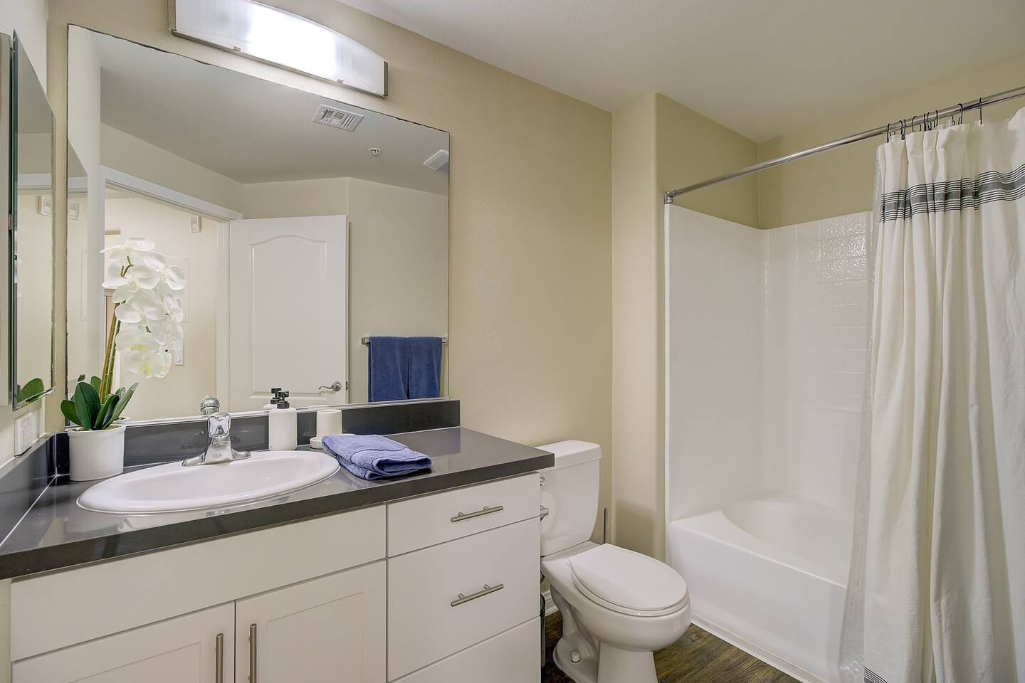 Spacious Bedrooms + 2 Full Bathrooms – Comfortably sleeps 6 with 1 King bed in the primary suite and 2 Queen beds in the second bedroom Tranquil Garden Views – Floor-to-ceiling windows bring the calming greenery right into your living space Open Living & Dining Area – Bright and airy, perfect for lounging, dining, or working remotely In-Unit Full-Size Washer & Dryer Resort-Style Amenities – Access to a fully equipped fitness center, sparkling pool, and soothing jacuzzi
