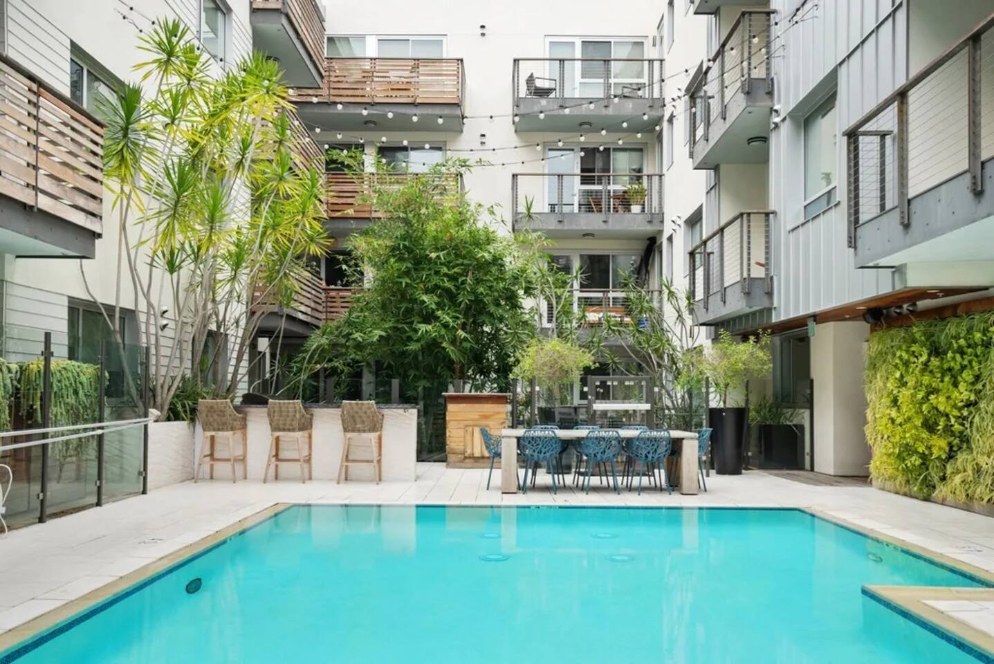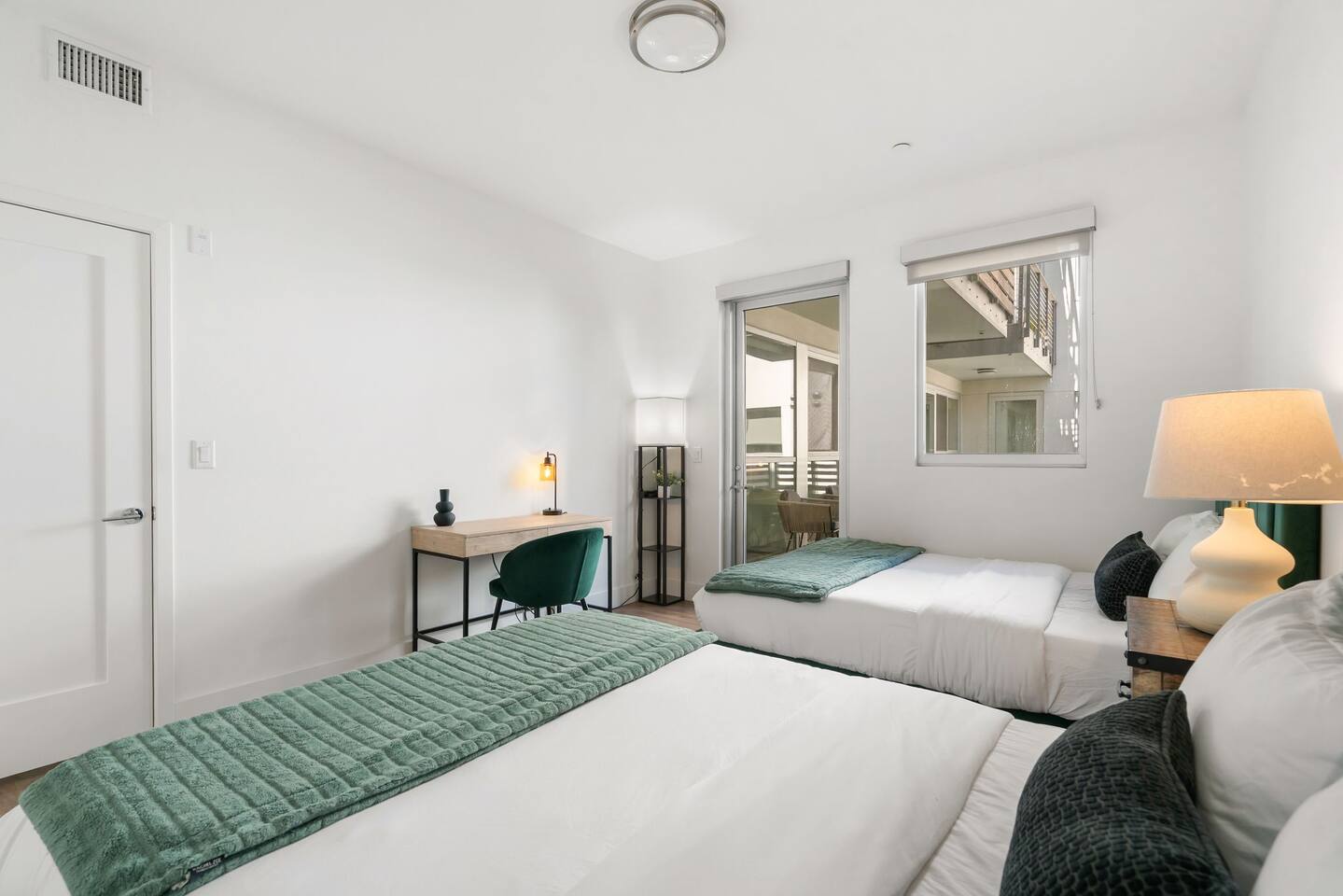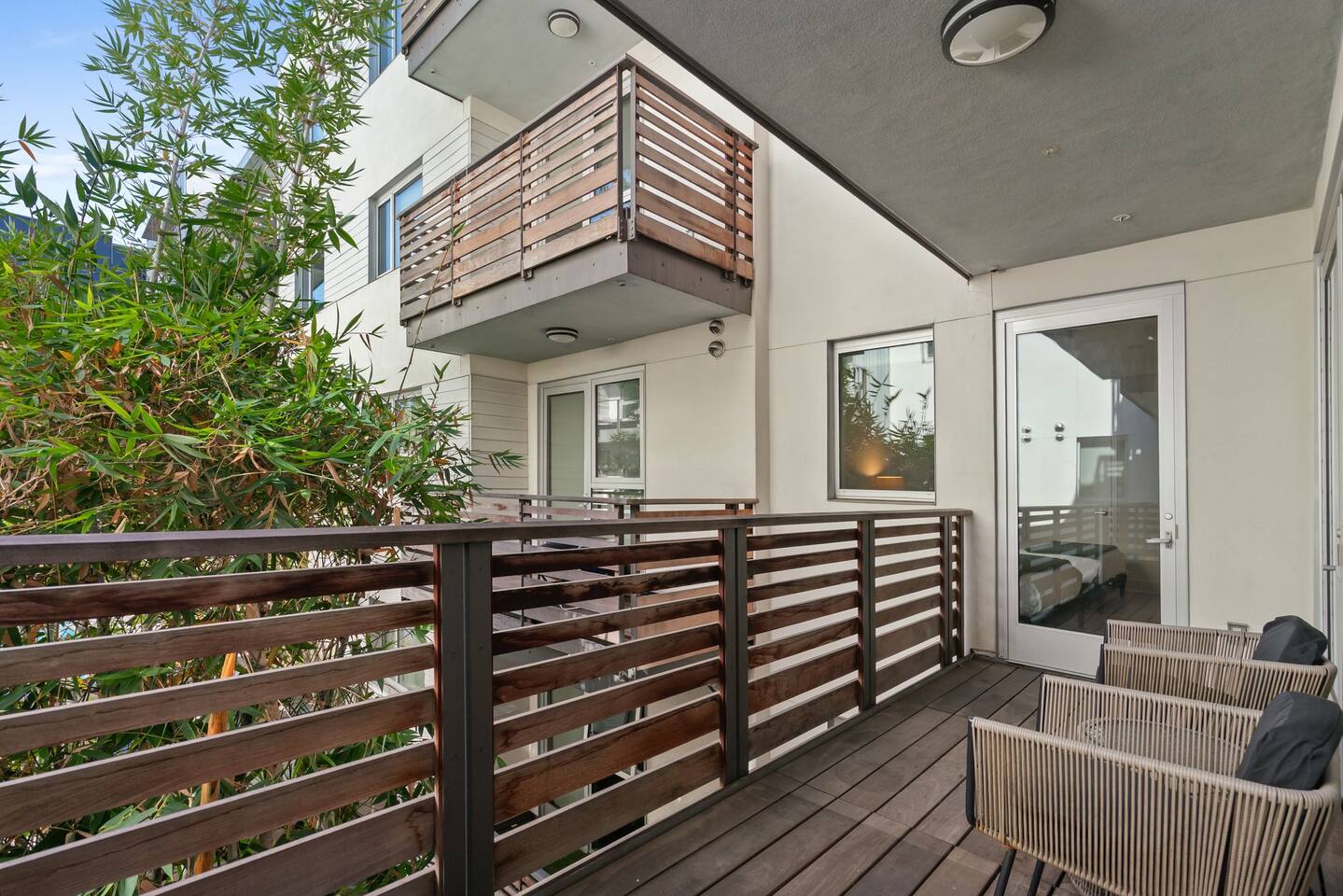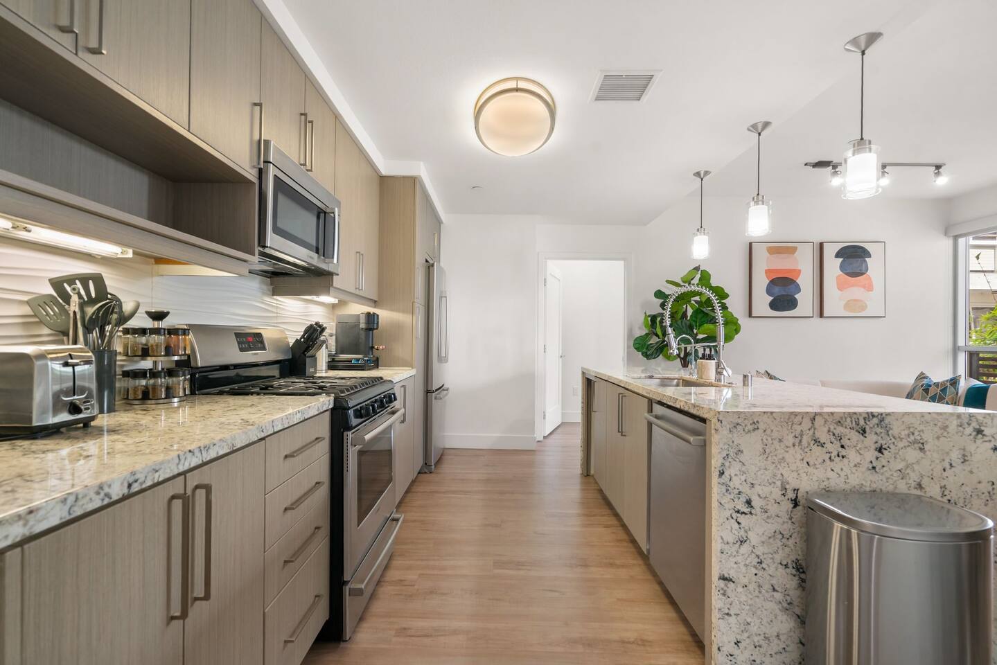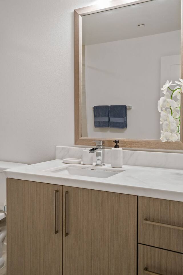 🏡 Your Santa Monica Retreat Step into a modern and tranquil 2BR/2BA apartment in the heart of downtown Santa Monica—just steps from the action, yet peacefully tucked away with calming courtyard views. 🛏️ Where You’ll Sleep Primary Bedroom: King bed + private en-suite Second Bedroom: Two Full beds—great for families or groups Soft linens and cozy bedding ensure a great night’s sleep. 🍽️ Cook & Dine at Home Whip up meals in the fully stocked kitchen featuring cookware, utensils, dishes, a coffee maker, and a Nespresso machine with pods for your morning fix. 📶 Fast & Reliable Wi-Fi Blazing-fast 1 GIG internet makes remote work, streaming, and video calls seamless. 🌿 Peaceful Courtyard Views Enjoy quiet mornings and relaxing evenings—this unit overlooks the inner garden courtyard, providing a peaceful escape from the city buzz. 🏊♂️ Luxury Amenities Take advantage of the building’s top-tier amenities: Pool & hot tub Fitness center 2 secure, assigned parking spots 📍 Walk to Everything Just a 1-minute walk to the 3rd Street Promenade, and a short stroll to Santa Monica Beach, the Pier, cafes, and shops. Whether you're here to unwind, explore, or work remotely, this is your perfect base in Santa Monica.