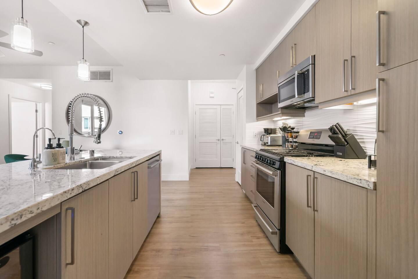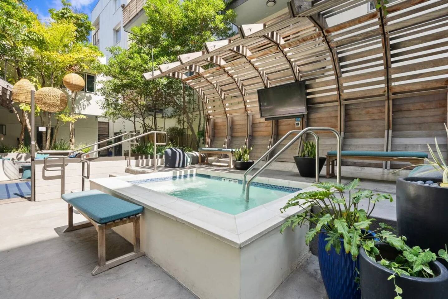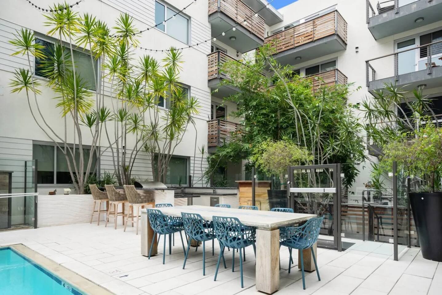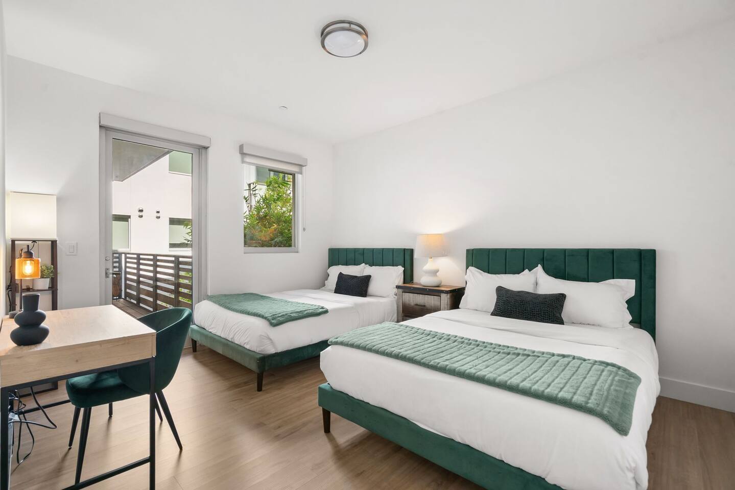 🏡 Your Santa Monica Retreat Step into a modern and tranquil 2BR/2BA apartment in the heart of downtown Santa Monica—just steps from the action, yet peacefully tucked away with calming courtyard views. 🛏️ Where You’ll Sleep Primary Bedroom: King bed + private en-suite Second Bedroom: Two Full beds—great for families or groups Soft linens and cozy bedding ensure a great night’s sleep. 🍽️ Cook & Dine at Home Whip up meals in the fully stocked kitchen featuring cookware, utensils, dishes, a coffee maker, and a Nespresso machine with pods for your morning fix. 📶 Fast & Reliable Wi-Fi Blazing-fast 1 GIG internet makes remote work, streaming, and video calls seamless. 🌿 Peaceful Courtyard Views Enjoy quiet mornings and relaxing evenings—this unit overlooks the inner garden courtyard, providing a peaceful escape from the city buzz. 🏊♂️ Luxury Amenities Take advantage of the building’s top-tier amenities: Pool & hot tub Fitness center 2 secure, assigned parking spots 📍 Walk to Everything Just a 1-minute walk to the 3rd Street Promenade, and a short stroll to Santa Monica Beach, the Pier, cafes, and shops. Whether you're here to unwind, explore, or work remotely, this is your perfect base in Santa Monica.