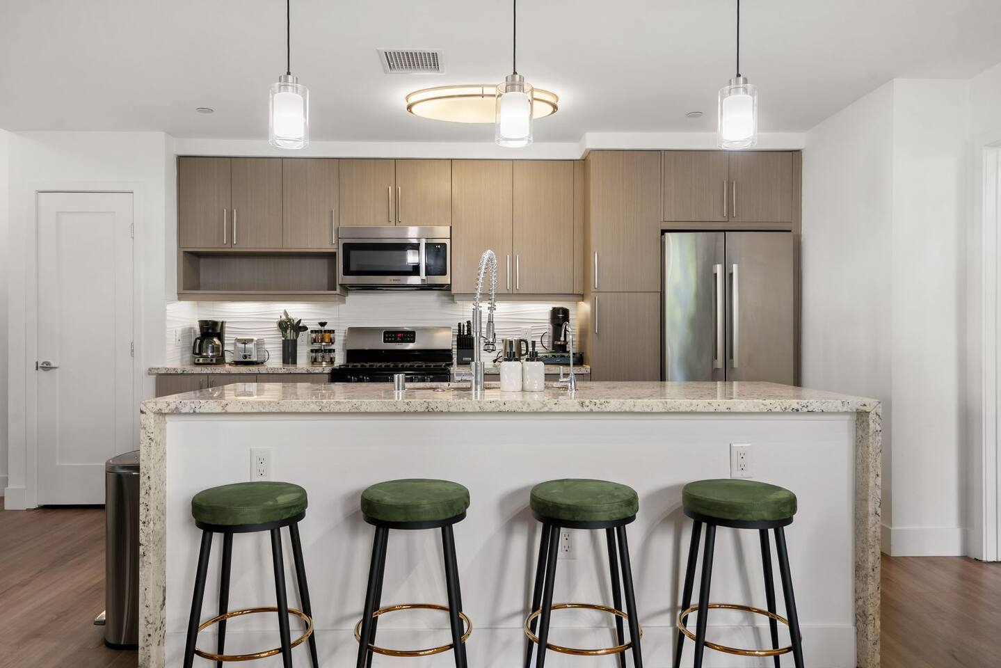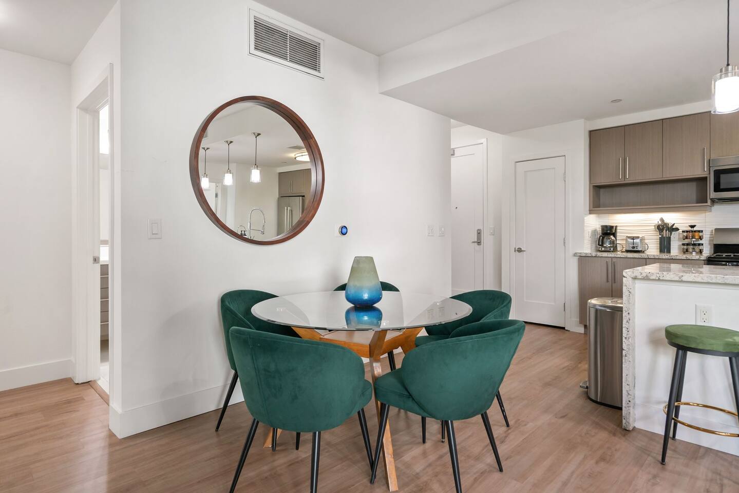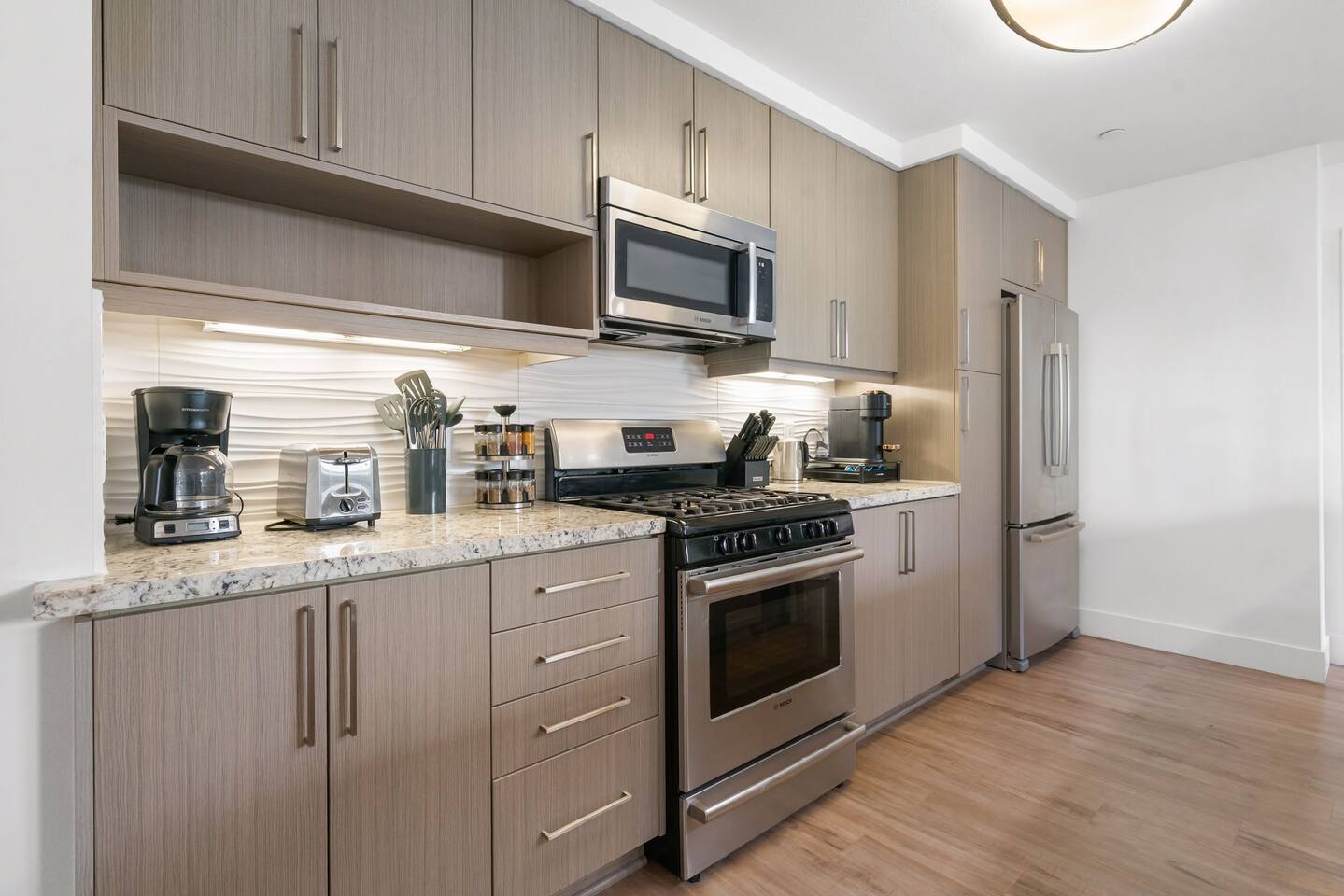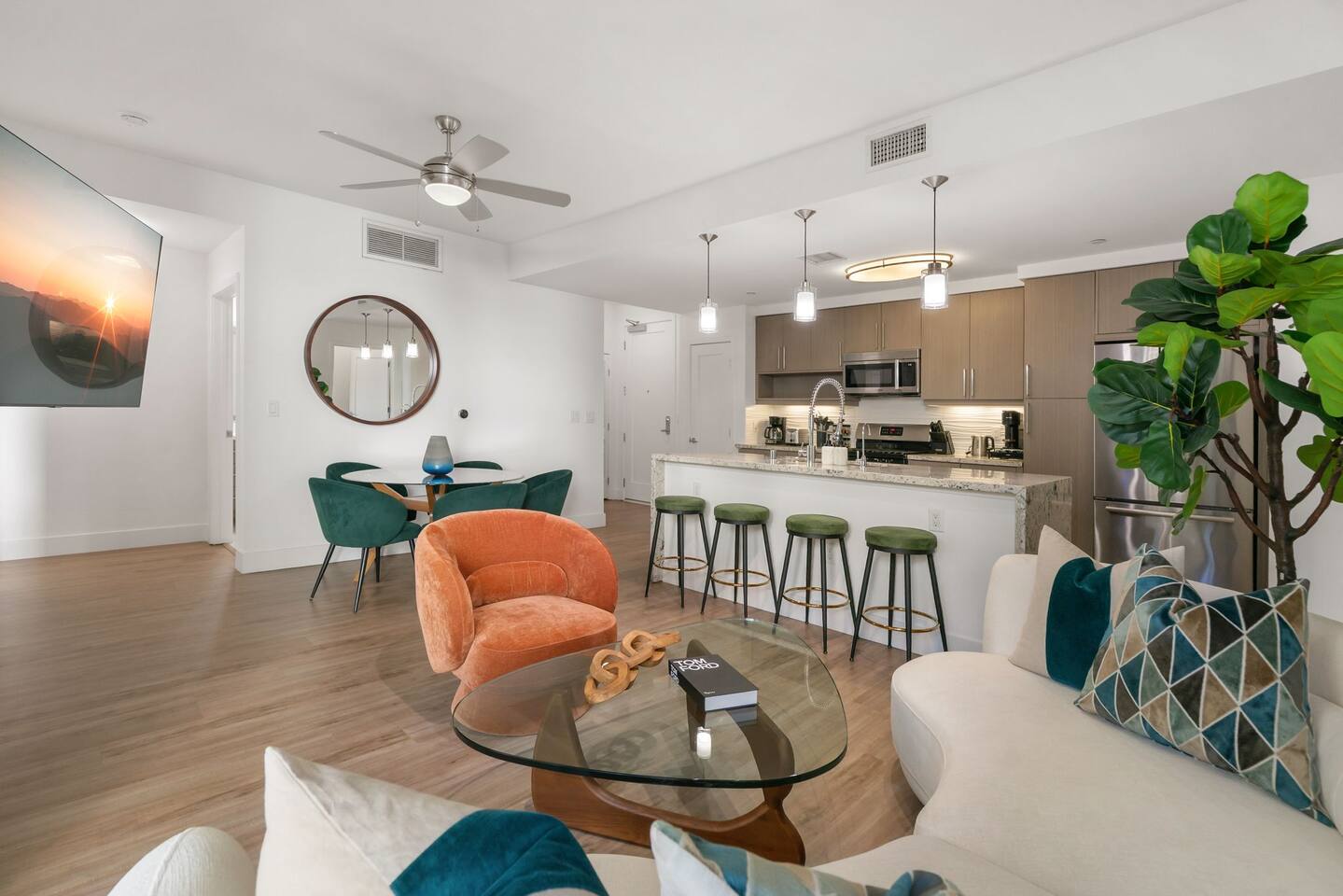 🏡 Your Santa Monica Retreat Step into a modern and tranquil 2BR/2BA apartment in the heart of downtown Santa Monica—just steps from the action, yet peacefully tucked away with calming courtyard views. 🛏️ Where You’ll Sleep Primary Bedroom: King bed + private en-suite Second Bedroom: Two Full beds—great for families or groups Soft linens and cozy bedding ensure a great night’s sleep. 🍽️ Cook & Dine at Home Whip up meals in the fully stocked kitchen featuring cookware, utensils, dishes, a coffee maker, and a Nespresso machine with pods for your morning fix. 📶 Fast & Reliable Wi-Fi Blazing-fast 1 GIG internet makes remote work, streaming, and video calls seamless. 🌿 Peaceful Courtyard Views Enjoy quiet mornings and relaxing evenings—this unit overlooks the inner garden courtyard, providing a peaceful escape from the city buzz. 🏊♂️ Luxury Amenities Take advantage of the building’s top-tier amenities: Pool & hot tub Fitness center 2 secure, assigned parking spots 📍 Walk to Everything Just a 1-minute walk to the 3rd Street Promenade, and a short stroll to Santa Monica Beach, the Pier, cafes, and shops. Whether you're here to unwind, explore, or work remotely, this is your perfect base in Santa Monica.