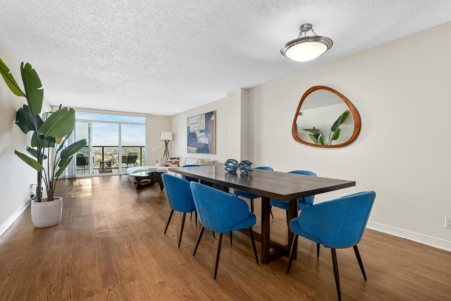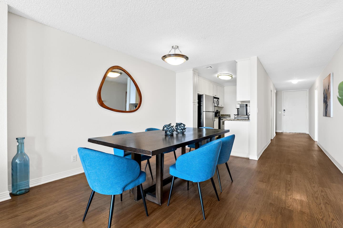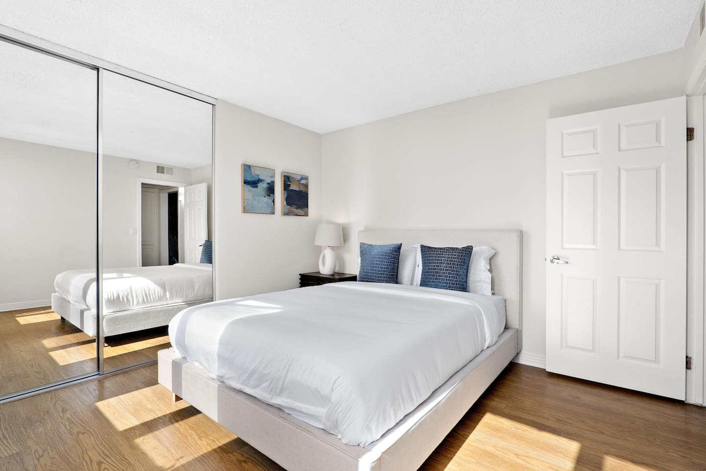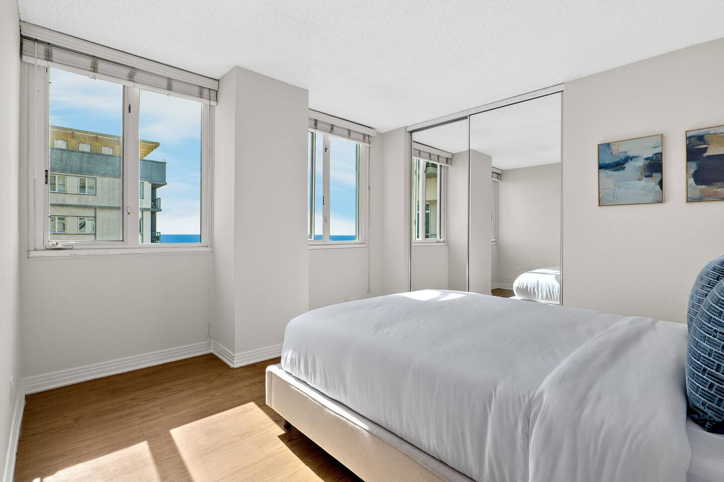 🌟 About the Space Welcome to Marina Del Rey Enjoy our high floor unit, with stunning views, premium privacy, and beautiful touches throughout. 🛋 Living Room Bright, open-concept layout with floor-to-ceiling windows and sleek designer furnishings. Enjoy the 65" Smart TV, ultra-comfy seating, and quiet ambiance thanks to top-level insulation. Central A/C and heat keep the space perfectly comfortable year-round. 🍽 Kitchen & Dining Cook up a storm in the fully equipped gourmet kitchen with stainless steel appliances, quartz countertops, and custom cabinetry. If you’re missing anything during your stay, just let us know. we’ll be happy to bring it to you 🛏 Bedrooms Primary Bedroom King-size bed with luxury mattress, 55" Smart TV, and a spacious walking closet. En-suite bathroom Second Bedroom Queen size bed, large closet, Guests have access to a second full bathroom. Third Bedroom: Queen size bed, closet cabinet. Guests have access to a second full bathroom with shower 🚿 Bathrooms Two sparkling-clean full bathrooms with glass showers, premium toiletries, plush towels, and hair dryers provided. 🌇 Private Balcony Step out onto your large private balcony with comfortable seating for 6+ people facing south and marina and ocean view. Enjoy your morning coffee or evening wine with unmatched sunrise views. 🧺 In-Unit Features Full-size washer & dryer with detergent provided 1Gig high-speed internet Central A/C and heat Keyless entry Tons of closet space 🏢 Building Amenities Heated pool with fence for the kids and lounge chairs Jacuzzi for 6people Lounge seating, and BBQ grills Outdoor dining areas & sunset views Fitness Center State-of-the-art gym with cardio machines & free weights Yoga area with pool views Additional Perks Secure, controlled building access 📍 Location, Location, Location! Walk to: The beach & Venice Pier (10Min walk) Mothers beach is across the street Local parks, cafés, and top-rated restaurants Essentials nearby: Pharmacy, banks, coffee shops all within walking distance to marina del Rey Plaza 🎯 Perfect For: ✔ Luxury travelers ✔ Beach lovers ✔ Remote workers & business travelers ✔ Families & small groups ✔ Couples seeking a romantic escape 💫 Why You’ll Love It This is a rare chance to stay in this beautiful unit. High-floor with premium finishes, incredible amenities, and a location that puts the best of Marina del rey at your doorstep. Whether you're here for work, play, or relaxation, this space has everything you need for an unforgettable stay.