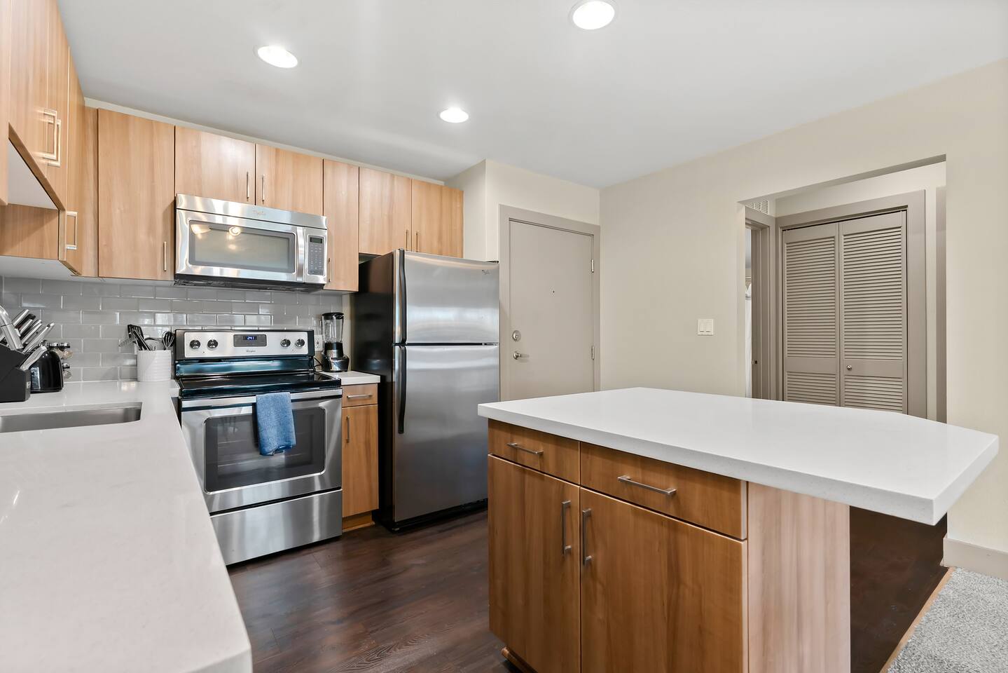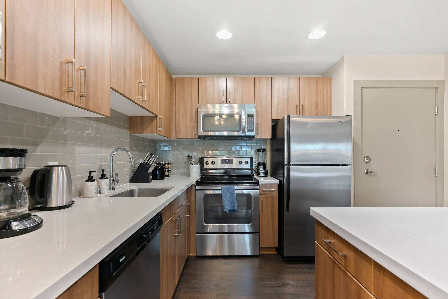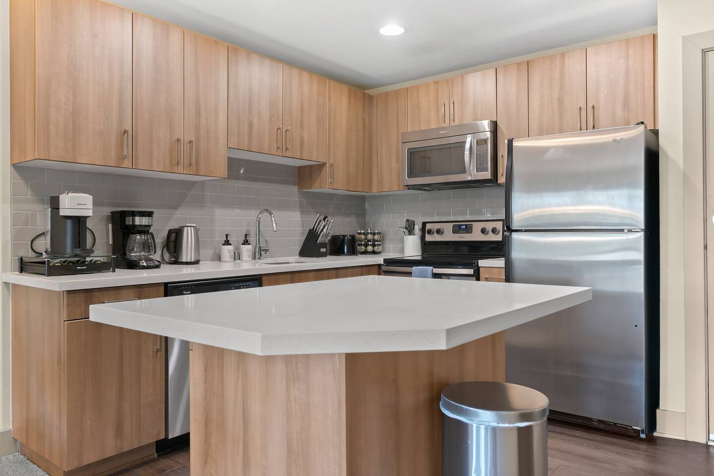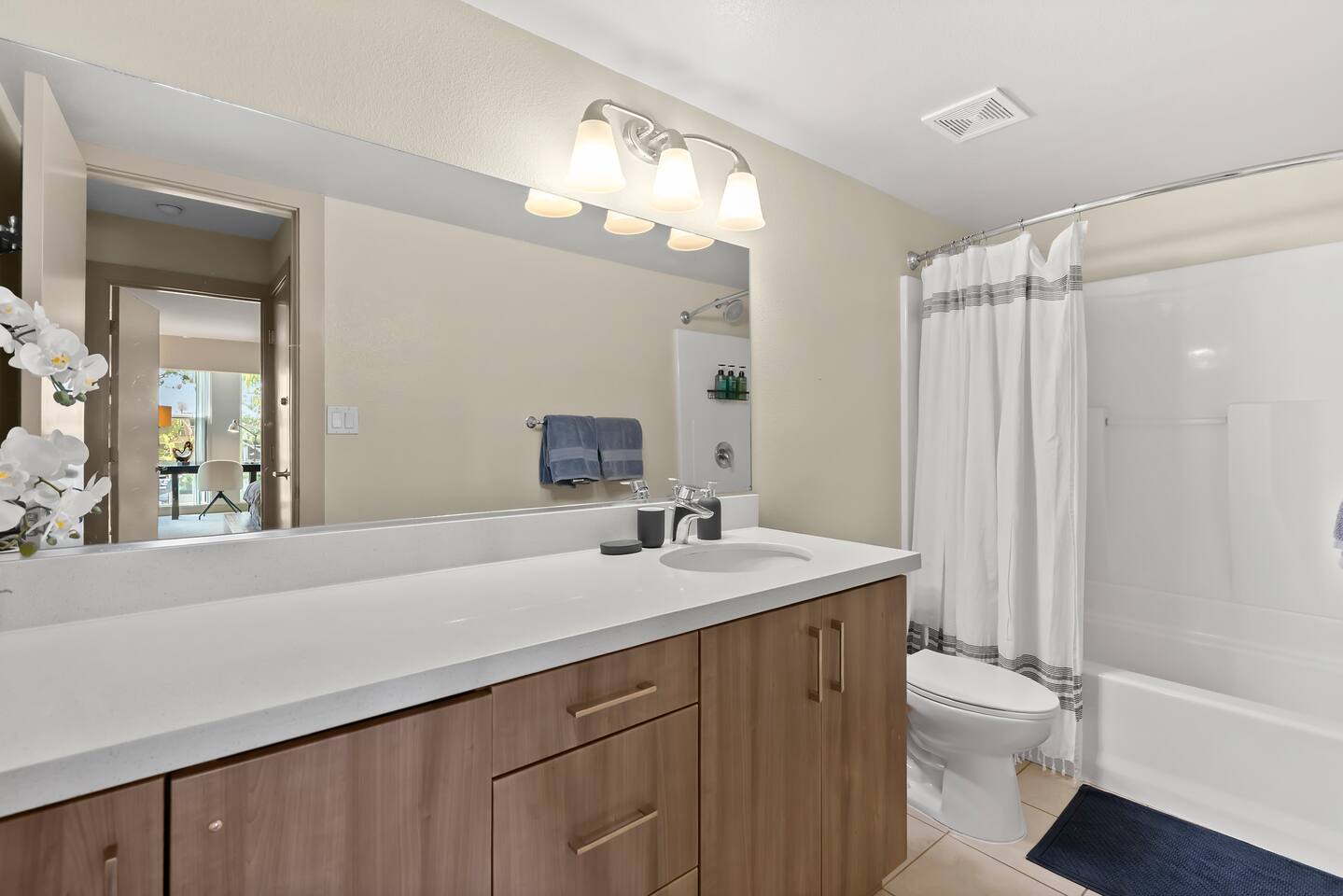 The entire apartment is yours—no shared spaces. Enjoy resort-style amenities including the gym, pool, hot tub, BBQ area, garden, and your private patio. Elevator access makes everything easy and breezy.