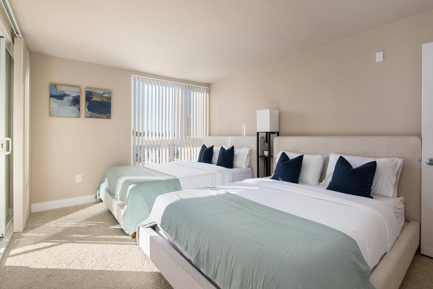 π Living Room Bright & Airy β Floor-to-ceiling windows fill the space with natural light and frame stunning marina views. Relax in Style β Modern, coastal-inspired furnishings create a chic yet comfortable vibe. Entertainment Ready β Smart TV for movie nights, streaming, or binge-worthy shows. Year-Round Comfort β Central A/C & heating ensure the perfect climate, all in a calm, quiet setting. π½ Kitchen & Dining Fully Equipped β Stainless steel appliances, cookware, utensils, and glassware included. Gather & Enjoy β Dining table ideal for family dinners or casual breakfasts. Ready for Anything β From quick snacks to gourmet mealsβeverything you need is right at your fingertips. π Bedrooms Primary Suite King-size bed with premium linens and plush pillows. Ensuite bathroom featuring a sleek walk-in shower. Spacious closet for extended stays. Second Bedroom Two queen-size beds with fresh, cozy linens. Convenient access to a second full bathroom with tub/shower combo. πΏ Bathrooms Two sparkling-clean full bathrooms, stocked with towels, toiletries, and hair dryers. π Private Outdoor Space A private patioβperfect for morning coffee, sunset cocktails, or simply soaking in the marina views. π§Ί In-Unit Features Full-size washer & dryer (detergent included). High-speed Wi-Fi for work, streaming, or staying connected. Keyless entry for seamless check-in and security. π’ Resort-Style Amenities Two heated outdoor pools with lounge chairs for relaxation. Fully equipped fitness center for workouts anytime. Secure building with controlled access. π Prime Location Just steps from the beach, Venice Pier, and Motherβs Beach. Stroll to waterfront cafΓ©s, shops, and top dining spots. Quick access to bike paths, parks, and the harbor. π― Perfect For β Families & couples β Beach lovers & boating enthusiasts β Remote workers seeking a scenic workspace β Small groups looking for a stylish coastal retreat π« Why Youβll Love It This beautifully styled condo offers breathtaking water views, resort-level amenities, and unmatched access to the best of Marina del Rey. Whether itβs a weekend getaway or an extended stay, youβll find the perfect balance of relaxation, style, and coastal living.