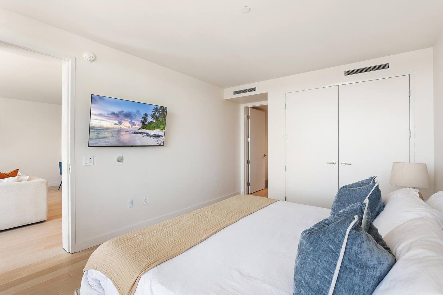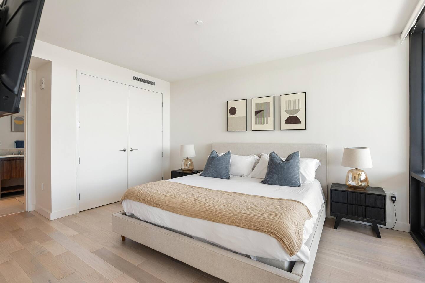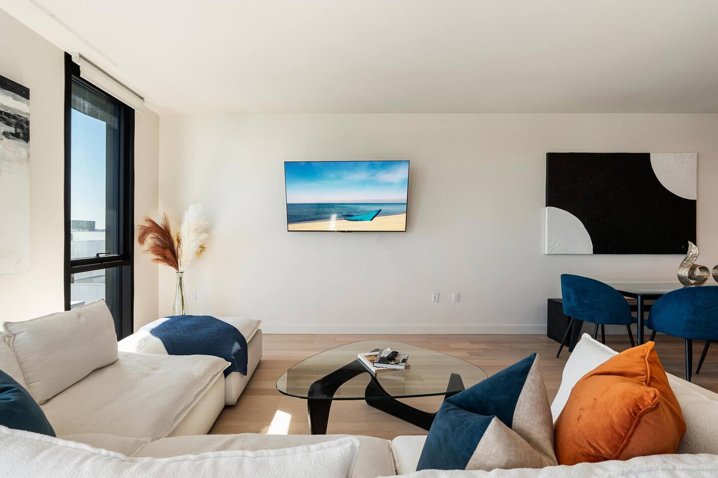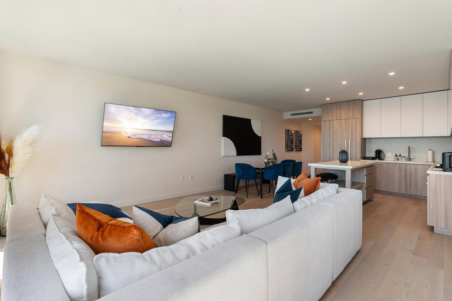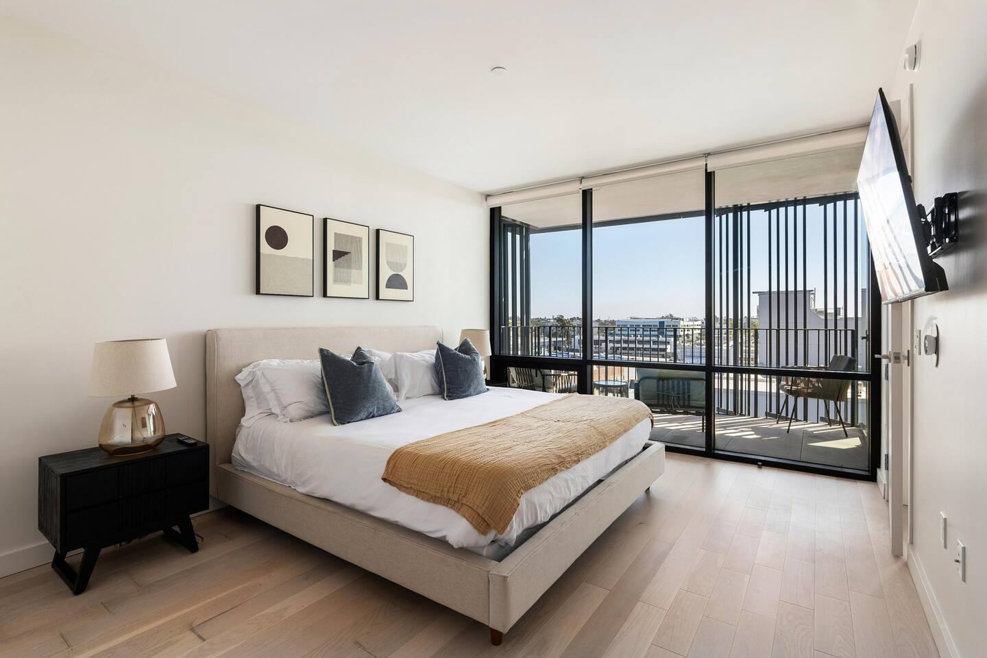 🛋️ Modern Comfort Meets Coastal Chic Step inside a beautifully designed home that checks every box: Bright & open layout with floor-to-ceiling windows Fully equipped chef’s kitchen with quartz countertops and top-tier appliances Comfortable living room with smart TV and designer furnishings Perfect for relaxing, entertaining, or remote work 🛏️ Sleep Like Royalty Primary Suite 💤 King-size luxury mattress with hotel-quality linens Walk-in closet with plenty of storage Smart TV for cozy movie nights Spa-inspired en-suite bathroom with: Double vanity Glass-enclosed walk-in shower Fluffy towels & premium bath products Second Bedroom 🌿 Two Full bed with soft bedding Ideal for a second couple, kids, or workmates Steps from the second full bathroom with: Sleek vanity Bath Oversized walk-in shower Modern fixtures and excellent lighting 🌴 Resort-Style Amenities You’ll have full access to all the luxury perks of the building: 🏊♀️ Resort rooftop Heated pool with cabanas and loungers 🧘♀️ Yoga & fitness studio with state-of-the-art equipment Rooftop 🌇 Rooftop lounge with 360° views of the ocean and city skyline 📶 High-speed Wi-Fi and central A/C 🧺 In-unit washer & dryer 🚗 Public Parking available Underneath the building. Traders Joes in the ground floor 📍 Unbeatable Location You’re right where you want to be: 🚶♂️ 10-minute walk to the beach & Santa Monica Pier 🍷 Surrounded by amazing restaurants, cafés, and shops 🛍️ Just blocks from the 3rd Street Promenade and Whole Foods 🚴♀️ Rent bikes or scooters nearby to explore Venice & the coast 💫 Whether you're traveling for work, celebrating a special occasion, or just craving a taste of the Santa Monica lifestyle, this stunning apartment has everything you need for an unforgettable stay. 📅 Book now and treat yourself to a truly elevated experience by the beach!